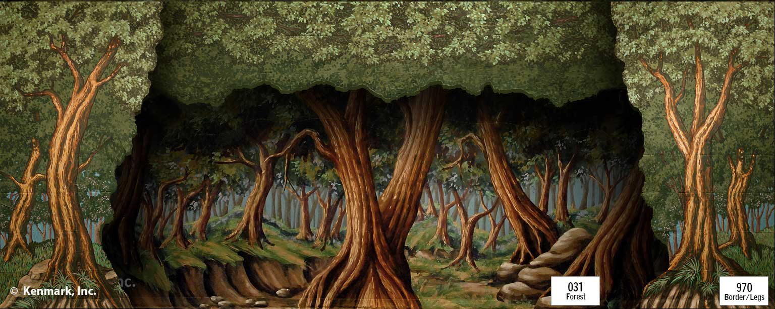 D970 Forest Border-Legs is one of the newest drops in our Forest series. The three-piece set can be used in any combination and the size can be adjusted. This set would work perfectly for Into the Woods, Wizard of Oz, A Midsummer Night’s Dream, Beauty and the Beast and Cinderella.The legs are 17′ tall and the border is 45′ wide. All three pieces of D970 Forest Border-Legs have grommets across the top with tie lines and a pocket in the back on the bottom so you can weight them with a pole. This set will be beautiful paired with one of our Forest backdrops such as D031 Forest 20′ x 50′