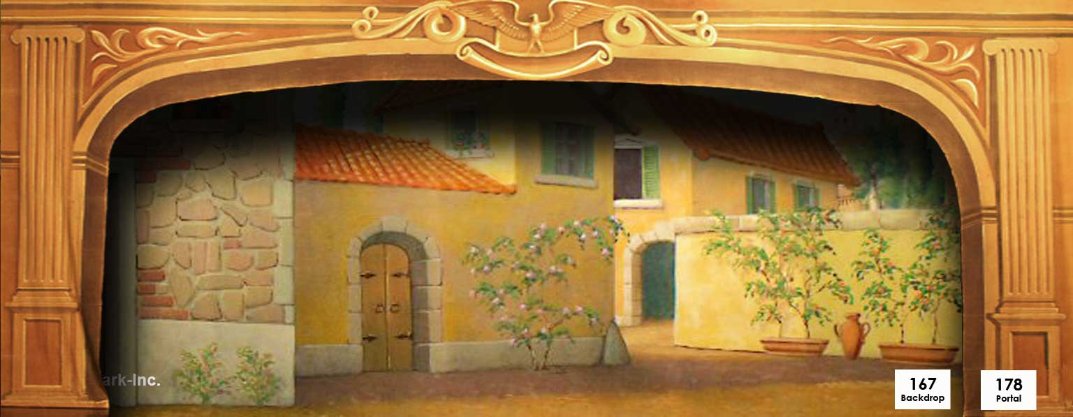 This beautifully detailed Proscenium Archway Portal is a golden-brown color with an eagle motif in the center of the arch. It can be used in a wide variety of ways, either alone or to enhance and add depth to another backdrop. The possibilities are only limited by your imagination!