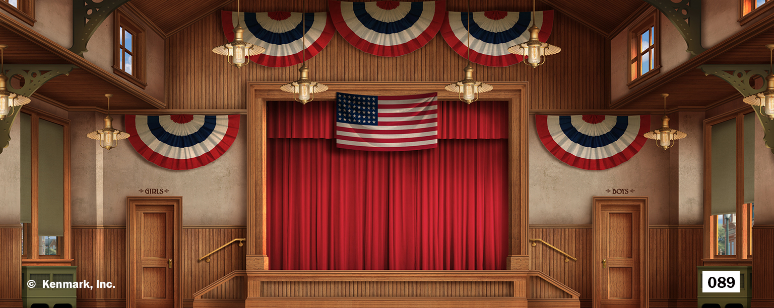 Our newest High School Gymnasium is perfect for THE MUSIC MAN, WEST SIDE STORY, HIGH SCHOOL MUSICAL or any show or dance revue where you want a high school look.