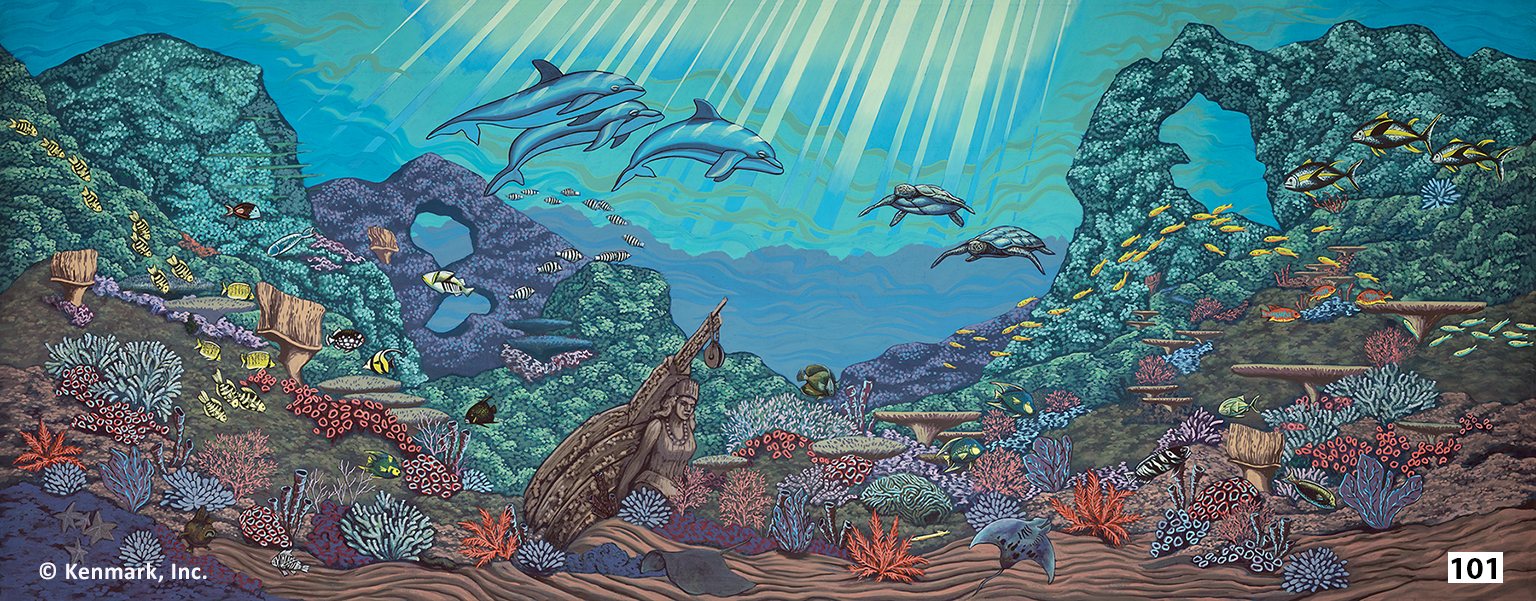 Under the Sea is an underwater backdrop that is colorful and fun. It’s an excellent backdrop for dance recitals and revues. This mural has also been used for THE LITTLE MERMAID. Other sizes and variations of this drop are D363 Underwater 17' x 41' and D027 Underwater 17' x 46'. You might also want to check out our new complete show packages for THE LITTLE MERMAID!