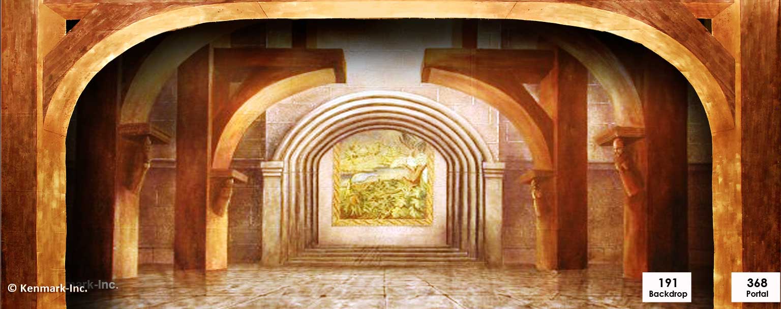 A beautiful Great Hall backdrop with massive wood beams and a luscious tapestry hanging at the far end. To add even more depth, pair it with D368 Great Hall Portal.