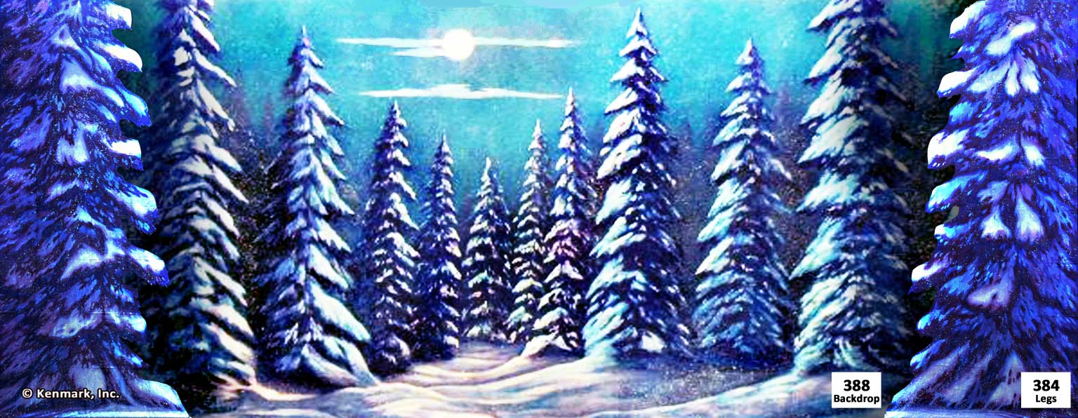 A set of Snow Forest – Legs for Nutcracker that can be used alone or paired with one of our stunning Snow Forest backdrops such as D388 Snow Forest with Moon.