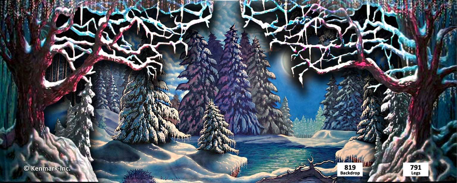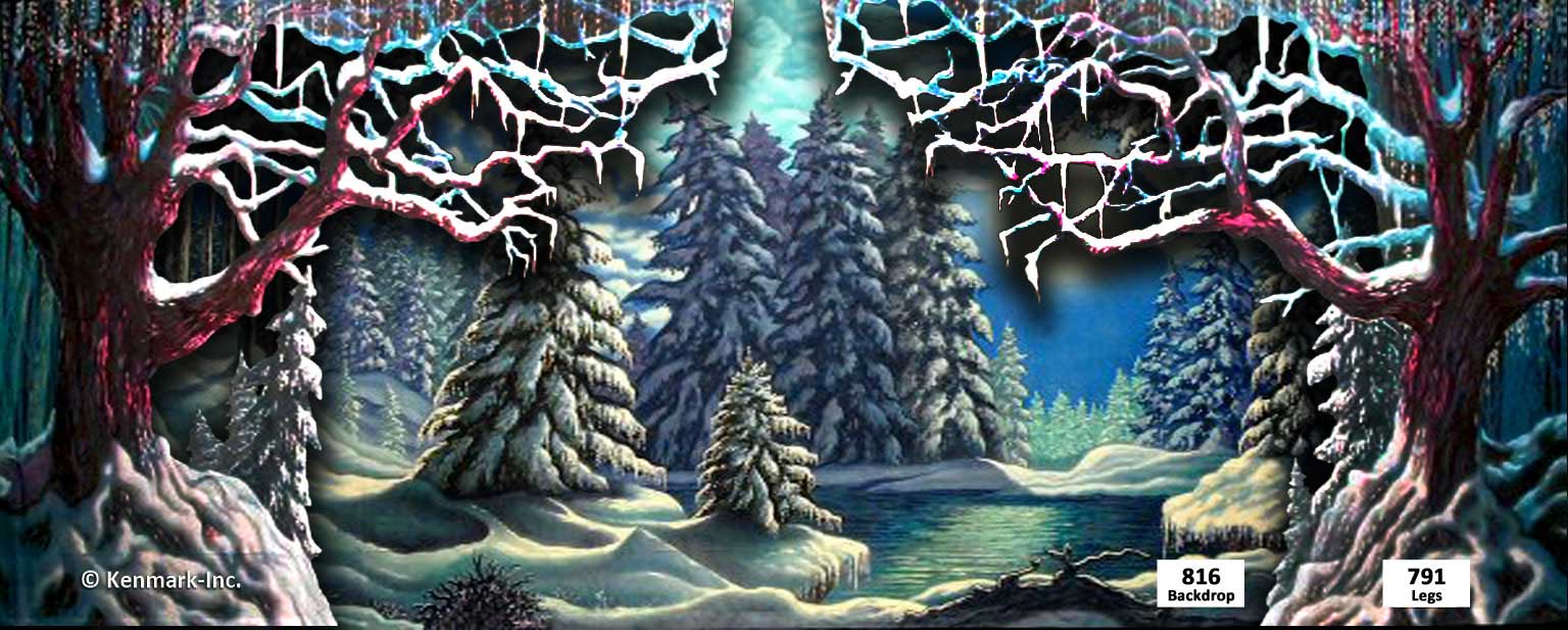 D791 Snow Forest Legs is a brand new set of legs in our Nutcracker Snow Forest category. D791 Snow Forest – Legs are perfect for The Nutcracker or The Lion the Witch and the Wardrobe. Each leg has grommets across the top with tie lines and a pocket on the bottom in back so you can weight them with a pole if you choose.