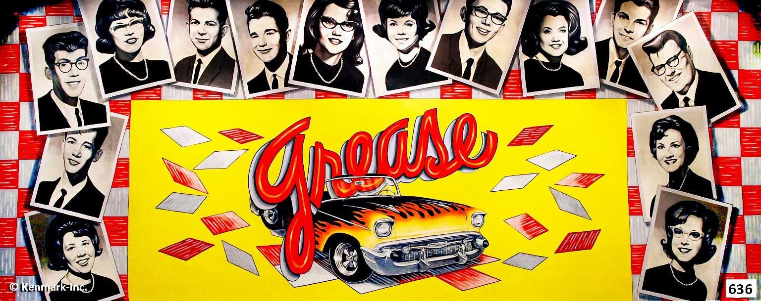 Beautifully hand-painted theatrical backdrops designed to provide continuity and quality to your “Grease” set. These gorgeous drops are designed by Scenic Designer Greg Hill and hand-painted by Master Scenic Artist Susan Crabtree. They are full-size drops measuring approximately 20′ x 50′ feet. Each drop has grommets and tie lines across the top and a pocket at the bottom so you can insert a pole to weight the drop. The Grease Package 1 has 7 drops, with a minimum order of 4 required unless your ship date is within the next 30 days. You must order at least 4 drops to receive the package price. All backdrops are approximately 20’x50′. Need a smaller size? Check out our 17’ x 45’ package for “Grease”. For additional information, visit our Rental Policies page. Can’t do the whole package? Check out our individual drops for Grease! All prices are for a one week rental (Monday to Monday). A $500 deposit is required on all packages. Shipping is an additional charge. Renting for more than one week? Call 913-648-8125 for pricing! Please note: This package contains a scrim. They are very fragile and require special handling. Repairs for damages start at a minimum of $100.