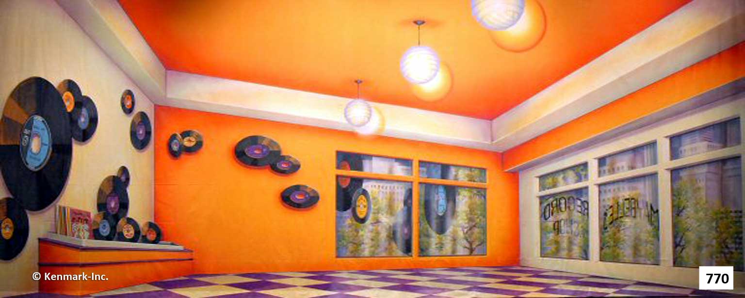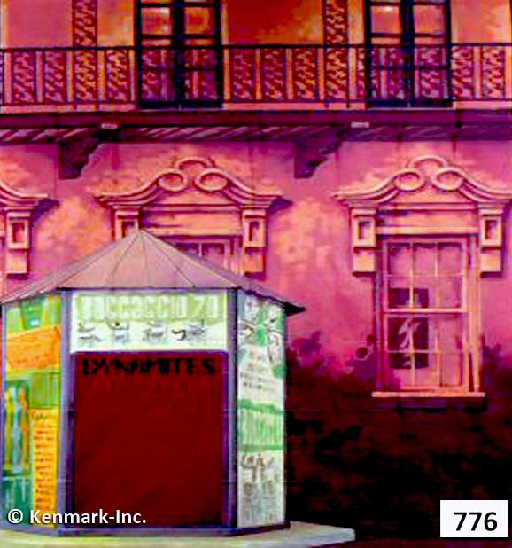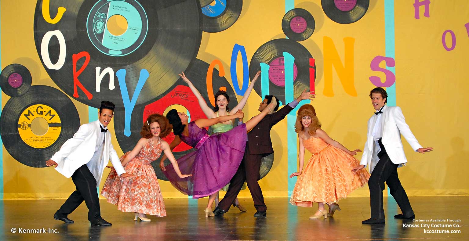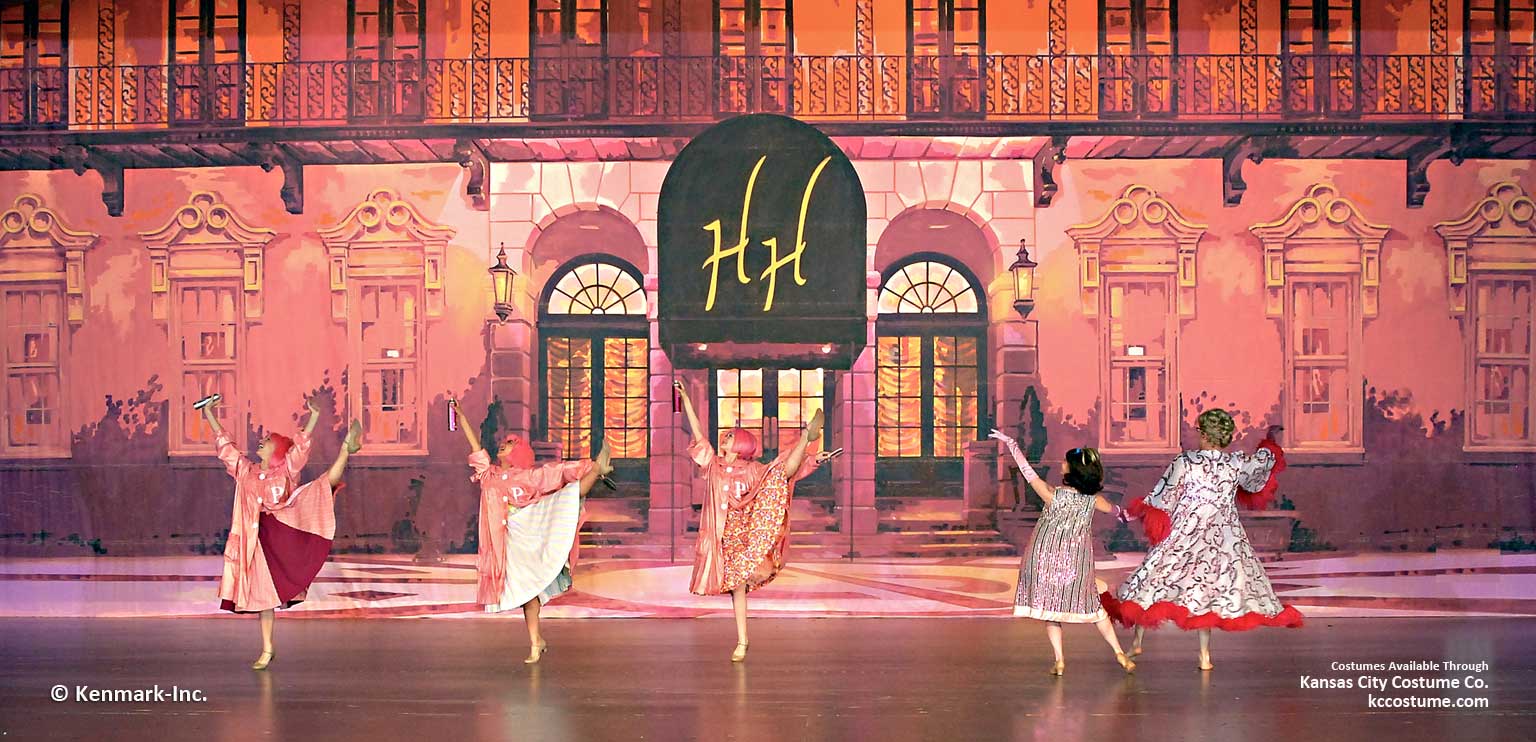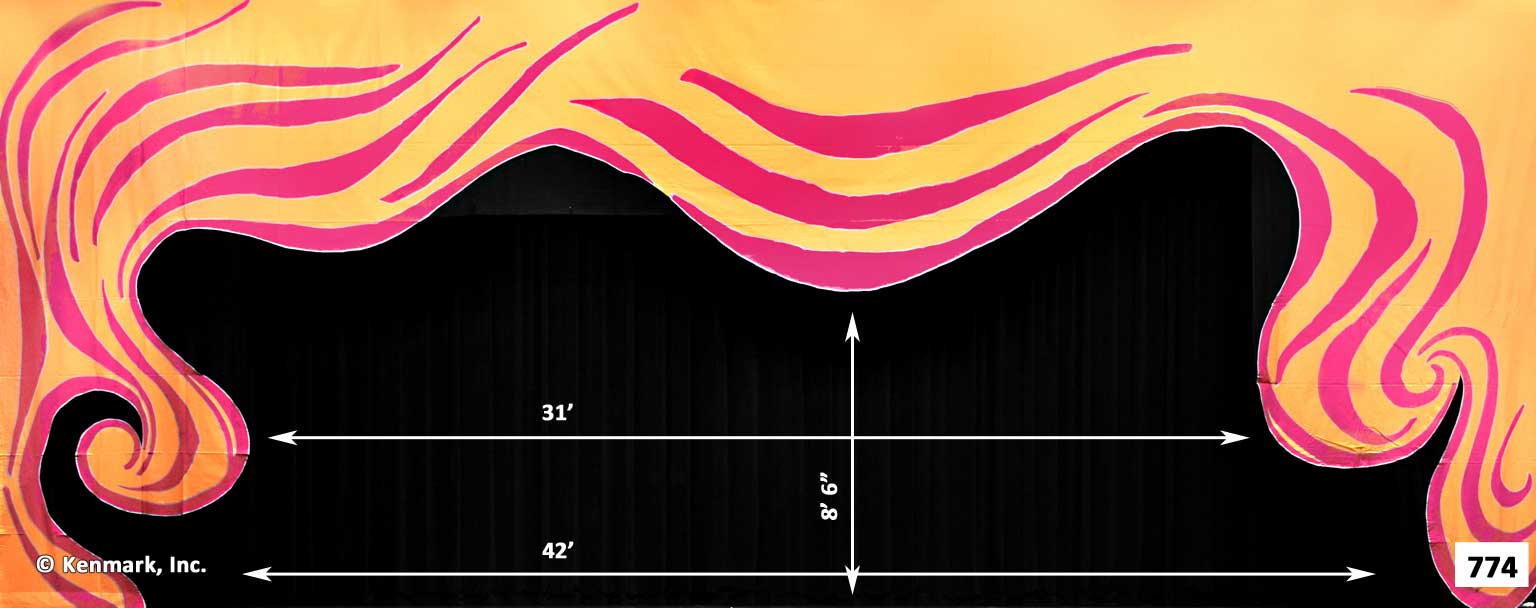 Beautifully hand-painted theatrical backdrops designed to provide continuity and quality to your “Hairspray” set. These are full-size drops measuring approximately 20′ x 50′ feet. Each drop has grommets and tie lines across the top and a pocket at the bottom so you can insert a pole to weight the drop. Drop ED773 Street Scene has translucent window and can be back lit to make the windows glow. The Hairspray Package 1 has a total of 13 drops, with a minimum order of 4 required unless your ship date is within the next 30 days. You must order at least 4 drops to receive the package price. For additional information, visit our Rental Policies page. Can’t do the whole package? Check out our individual backdrops for Hairspray! All full size backdrops are approximately 20’x50′. All tabs are 20’x24′. *Please note: This package contains a scrim. They are very fragile and require special handling. Repairs for damages start at a minimum of $100. The advantage of using scrims is that when lit from the front they appear mostly opaque to the audience, until a change in stage lighting (lighting from behind) makes them almost fully transparent. Scrims have a rectangular weave that is similar in size in its openings and design to a window screen. All prices are for a one week rental (Monday to Monday). A $500 deposit is required on all packages. Shipping is an additional charge. Renting for more than one week? Call 913-648-8125 for pricing!