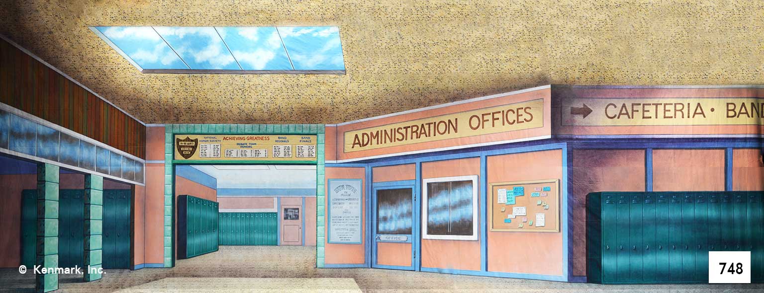 Beautifully hand-painted theatrical backdrops designed to provide continuity and quality to your “High School Musical” set. These gorgeous drops are designed by Scenic Designer Rex Heuschkel and hand-painted by Master Scenic Artist David McClain. They are full-size drops measuring approximately 20′ x 50′ feet. Each drop has grommets and tie lines across the top and a pocket at the bottom so you can insert a pole to weight the drop. The High School Musical Package 1 has a total of 4 drops, with a minimum order of 4 required unless your ship date is within the next 30 days. You must order all 4 drops to receive the package price. All backdrops are approximately 20’x50′. Need a smaller size? Check out our 17’ x 45’ package for “High School Musical”. Can’t do the whole package? Check out our individual backdrops for High School Musical! All prices are for a one week rental (Monday to Monday). A $500 deposit is required on all packages. Shipping is an additional charge. Renting for more than one week? Call 913-648-8125 for pricing!