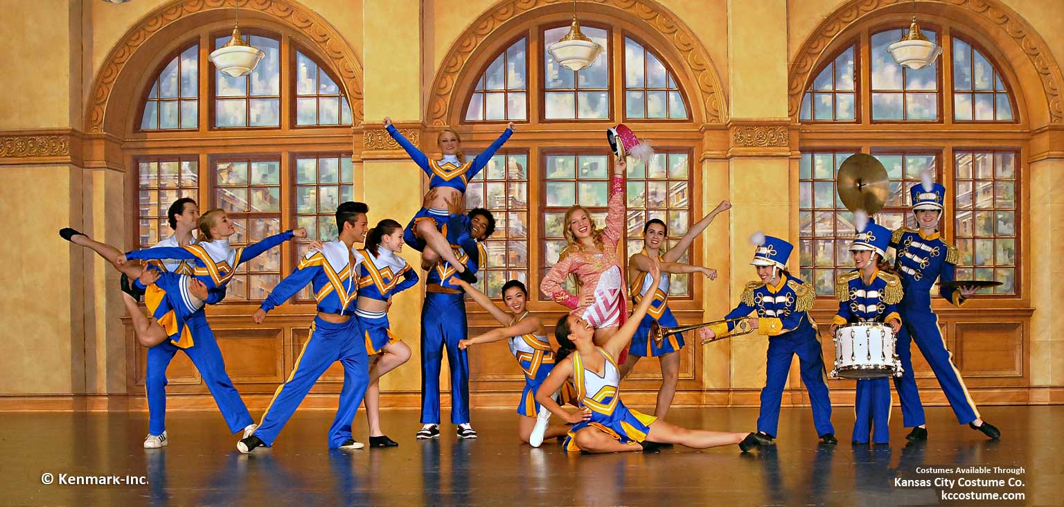 Beautifully hand-painted theatrical backdrops designed to provide continuity and quality to your “Legally Blonde” set. These gorgeous drops are designed by Scenic Designers Jason Phillips & David McClain and hand-painted by Master Scenic Artists Susan Crabtree & David McClain. They are full-size drops measuring approximately 20′ x 50′ feet. Each drop has grommets and tie lines across the top and a pocket at the bottom so you can insert a pole to weight the drop. The Legally Blonde Package 1 has a total of 4 drops. This package is rented individually. For additional information, visit our Rental Policies page. All full-size backdrops are approximately 20′ x 48′. Need a smaller size? Consider our 17’ x 45’ package for “Legally Blonde.” All prices are for a one-week rental (Monday to Monday). A $500 deposit is required on all packages. Shipping is an additional charge. Renting for more than one week? Call 913-648-8125 for pricing!
