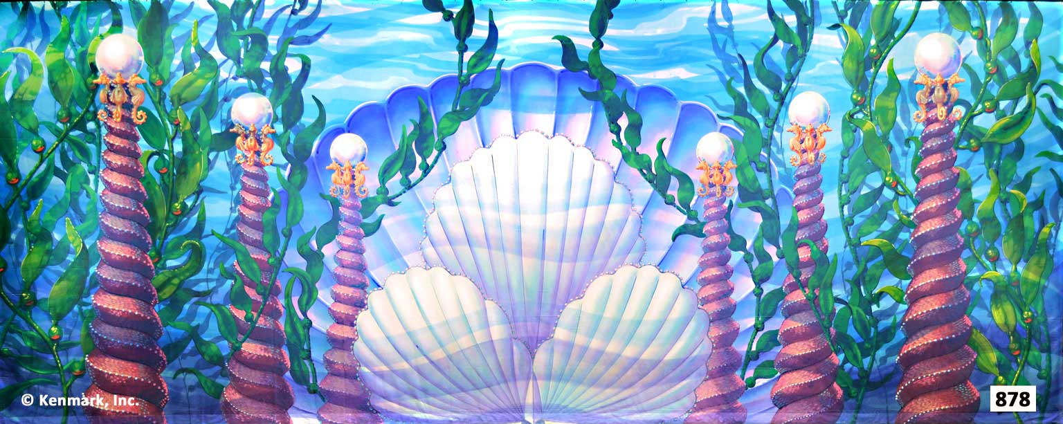 Beautifully hand-painted theatrical backdrops designed to provide continuity and quality to your “Little Mermaid” set. These gorgeous drops are designed by Scenic Designer Jason Phillips and are beautifully hand-painted by Master Scenic Artist Susan Crabtree. They are full-size drops measuring approximately 20′ x 50′. Each drop has grommets and tie lines across the top and a pocket at the bottom so you can insert a pole to weight the drop. The Little Mermaid Package 1 has a total of 5 drops. You are required to order the complete package unless your ship date is within the next 30 days. You must order all 5 drops to receive the package price. For additional information, visit our Rental Policies page. All the backdrops are approximately 20′ x 50′. Need a smaller size? Check-out our 17’ x 45’ or our 20'x48' package for “Little Mermaid.” Can’t do the whole package? Check-out our individual drops for The Little Mermaid! All prices are for a one-week rental (Monday to Monday). A $500 deposit is required on all packages. Shipping is an additional charge. Renting for more than one week? Call 913-648-8125 for pricing!