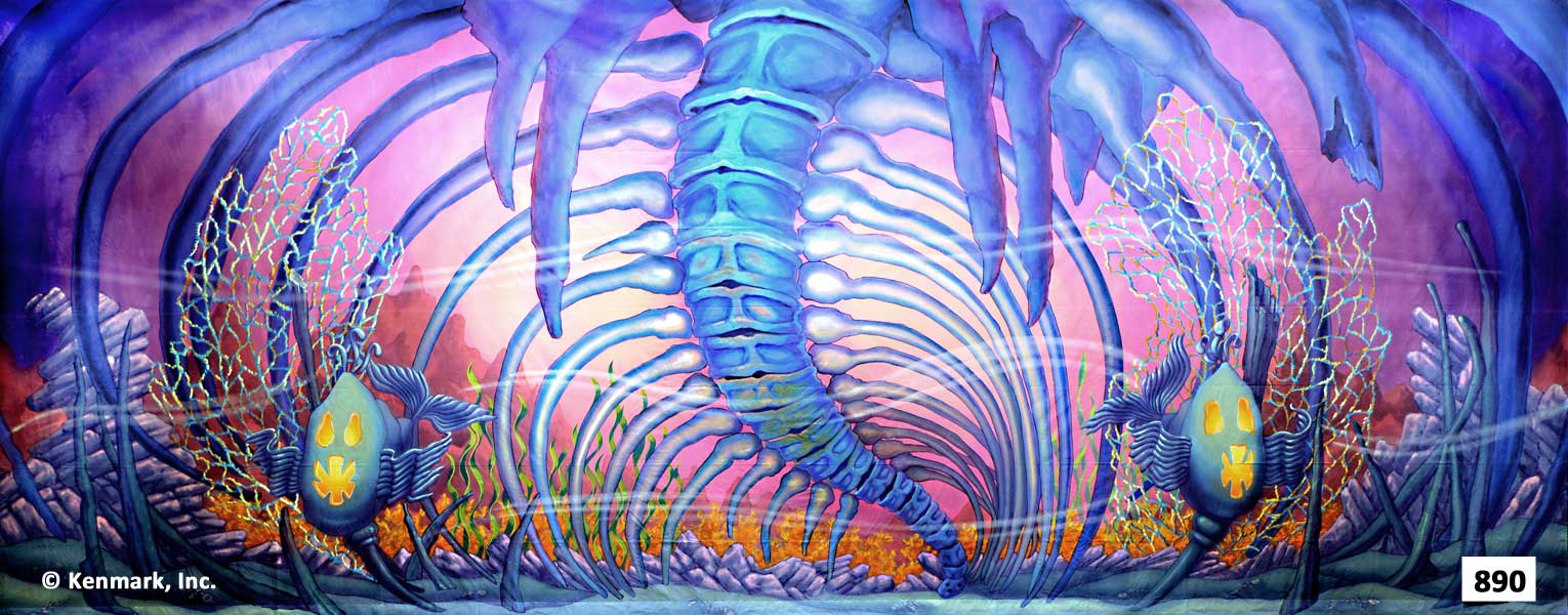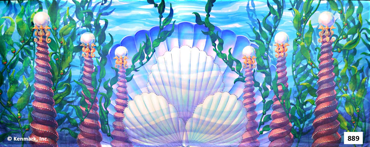 Beautifully hand-painted theatrical backdrops designed to provide continuity and quality to your “Little Mermaid” set. These gorgeous drops are designed by Scenic Designer Jason Phillips and will be beautifully hand-painted by Master Scenic Artist Susan Crabtree. They are full-size drops measuring approximately 20′ x 48′. Each drop has grommets and tie lines across the top and a pocket at the bottom so you can insert a pole to weight the drop. The Little Mermaid Package 3 has a total of 5 drops. You are required to order the complete package unless your ship date is within the next 30 days. You must order all 5 drops to receive the package price. For additional information, visit our Rental Policies page. All the backdrops are approximately 20′ x 48′. Need a smaller size? Check-out our 17'×45' package. Need a larger size? Check-out our 20'x50' package. Can’t do the whole package? Check-out our individual drops for The Little Mermaid! All prices are for a one-week rental (Monday to Monday). A $500 deposit is required on all packages. Shipping is an additional charge. Renting for more than one week? Call 913-648-8125 for pricing!