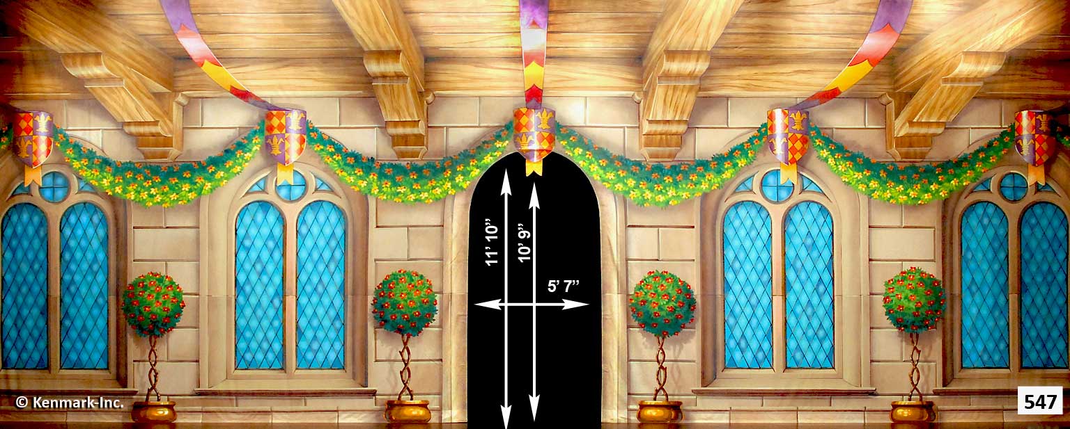 Beautifully hand-painted theatrical backdrops designed to provide continuity and quality to your “Once upon a Mattress” set. These gorgeous drops are designed by Scenic Designer Greg Hill and beautifully hand-painted by Master Scenic Artist Susan Crabtree. They are full-size drops measuring approximately 20′ x 50′ feet. Each drop has grommets and tie lines across the top and a pocket at the bottom so you can insert a pole to weight the drop. The Once Upon a Mattress Package 1 has a total of 6 drops. You are required to order 4 backdrops from the package unless your ship date is within the next 30 days. You must order 4 drops to receive the package price. All backdrops are approximately 20′ x 50′. Need a smaller size? Check-out our 17’ x 45’ package for “Once upon a Mattress.” Can’t do the whole package. Check-out our individual backdrops for Once Upon a Mattress! For additional information, visit our Rental Policies page. All prices are for a one-week rental (Monday to Monday). A $500 deposit is required on all packages. Shipping is an additional charge. Renting for more than one week? Call 913-648-8125 for pricing!