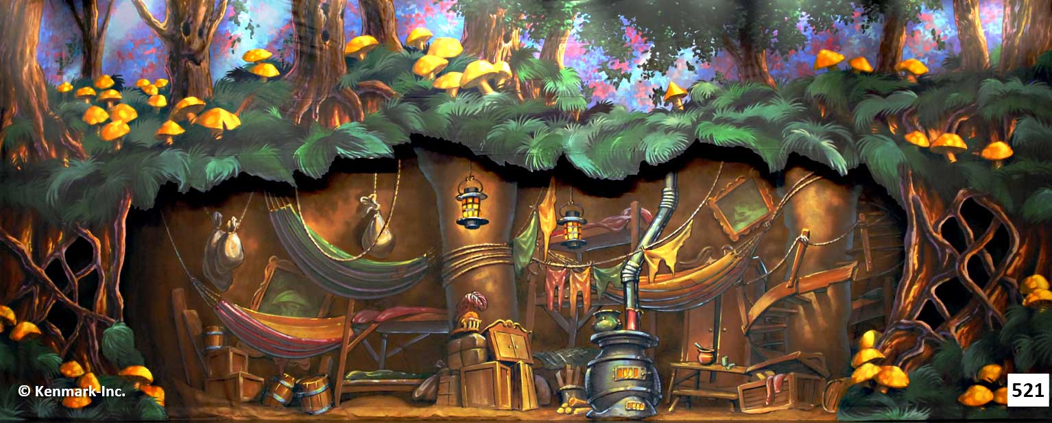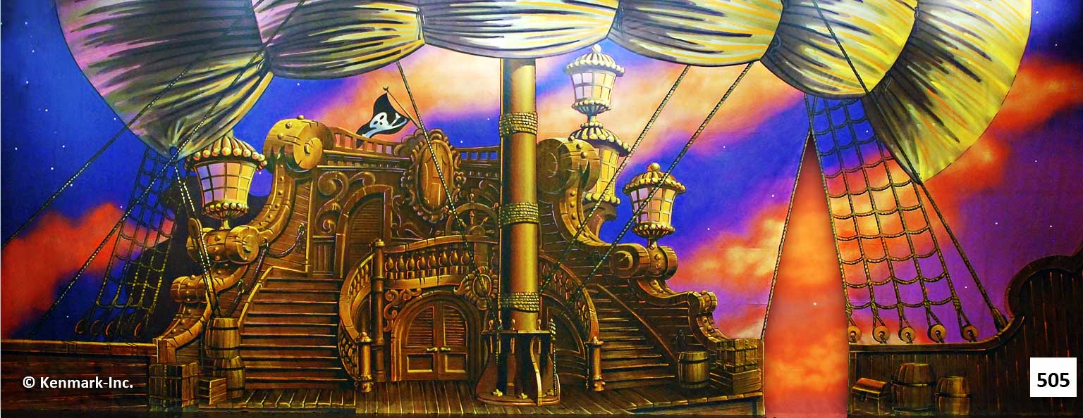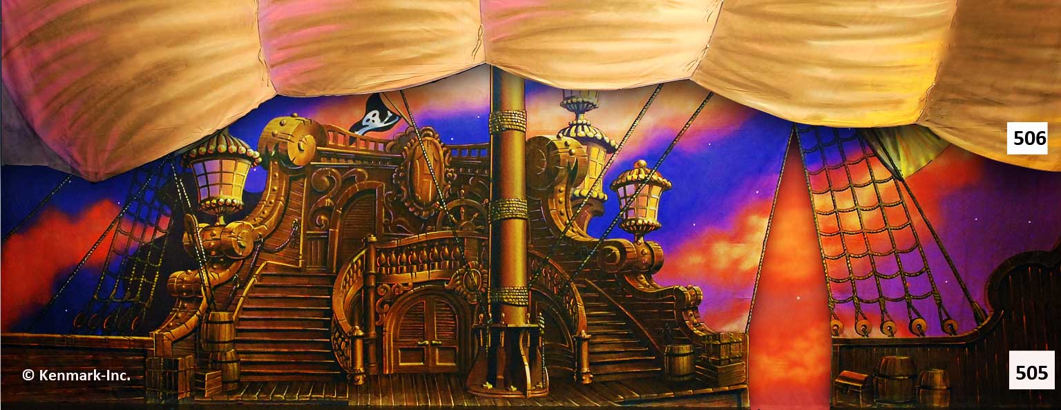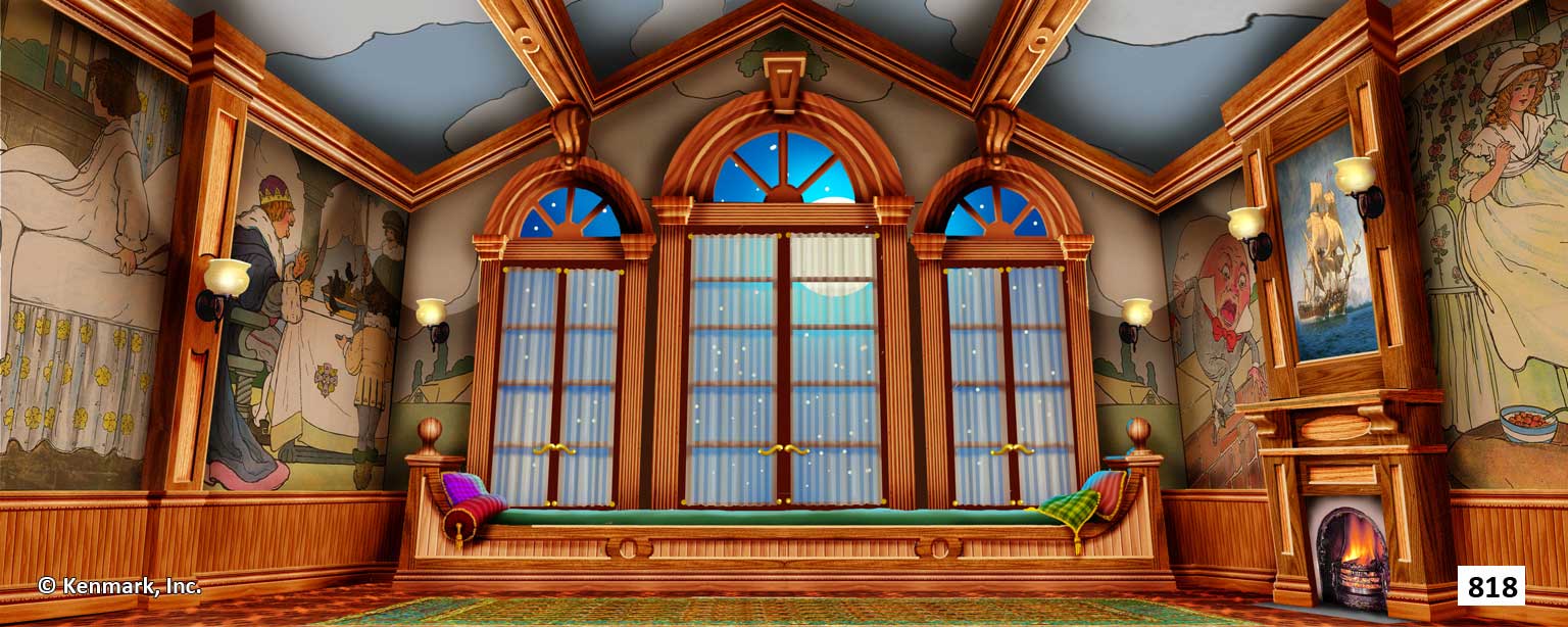 Beautifully hand-painted theatrical backdrops designed to provide continuity and quality to your “Peter Pan” set. These gorgeous drops are designed by Scenic Designer Greg Hill and hand-painted by Master Scenic Artist Susan Crabtree. They are full-size drops measuring approximately 20′ x 50′ feet. Each drop has grommets and tie lines across the top and a pocket at the bottom so you can insert a pole to weight the drop. The Peter Pan Package 1 has a total of 14 backdrops. You are required to order a minimum of 4 drops unless your ship date is within the next 30 days. You must order at least 4 backdrops to receive the package price. All backdrops are approximately 20′ x 50′ and all legs are approximately 20”. Have a smaller space? Check-out our 17′ x 45” package for this show! Can’t do the whole package? Check-out our individual drops for Peter Pan! For additional information, visit our Rental Policies page. All prices are for a one-week rental (Monday to Monday). A $500 deposit is required on all packages. Shipping is an additional charge. Renting for more than one week? Call 913-648-8125 for pricing! Please note: The Act Curtain backdrop is a scrim. They are very fragile and require special handling. Repairs for damages start at a minimum of $100. The advantage of using scrims is that when lit from the front they appear mostly opaque to the audience, until a change in stage lighting (lighting from behind) makes them almost fully transparent. Scrims have a rectangular weave that is similar in size in its openings and design to a window screen.