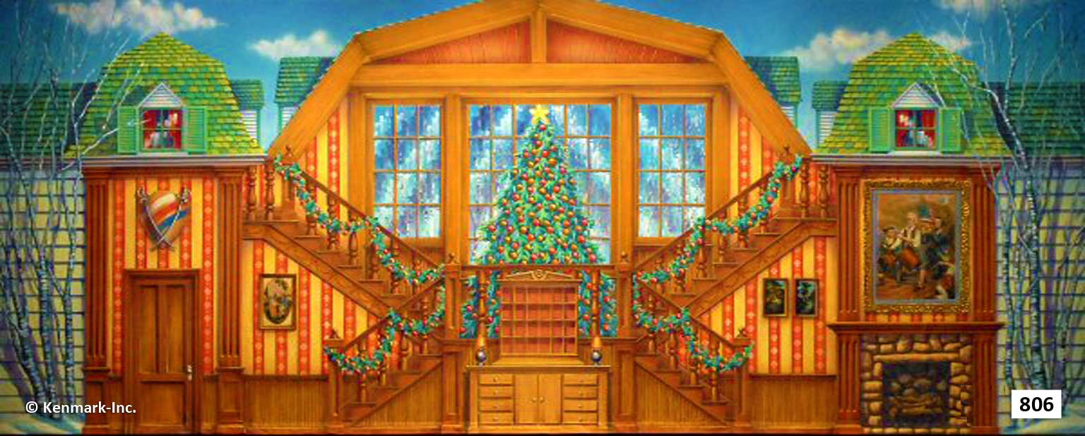 Beautifully hand-painted theatrical backdrops designed to provide continuity and quality to your “White Christmas” set. These gorgeous drops are designed by Scenic Designer Jason Phillips and hand-painted by Master Scenic Artist Susan Crabtree. They are full-size drops measuring approximately 20′ x 50′ feet. Each drop has grommets and tie lines across the top and a pocket at the bottom so you can insert a pole to weight the drop. The White Christmas Package 1 has 4 backdrops. You are required to take all 4 unless your ship date is within the next 30 days. You must order all 4 backdrops to receive the package price. Have a smaller space? Check out our 20′ x 45′ package for this show! Note: Holiday backdrop rentals have different shipping schedules due to high demand and rapid turnover. Please contact us for these shipping schedules. Payments for all Holiday orders placed prior to October 1st are due on or before October 15th. All orders placed after October 1st, are due within two weeks after placing the order along with the signed contract and security deposit. If you order within two weeks of your ship date, payment and deposit are due immediately. Payment by check is not accepted within two weeks of shipping. For additional information, visit our Rental Policies page. Can’t do the whole package? Check out our individual drops for White Christmas! All prices are for a one week rental (Monday to Monday). A $500 deposit is required on all packages. Shipping is an additional charge. Renting for more than one week? Call 913-648-8125 for pricing.
